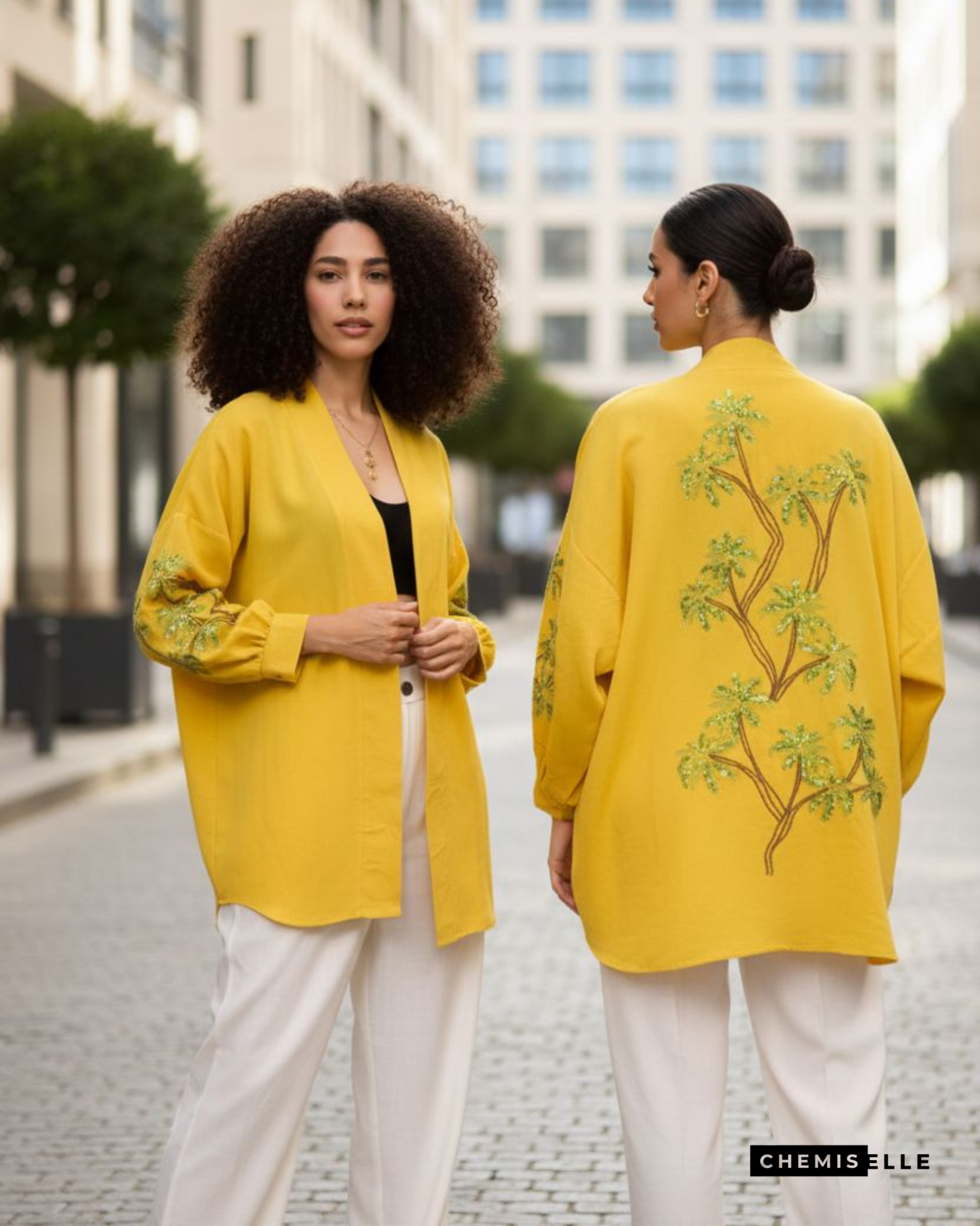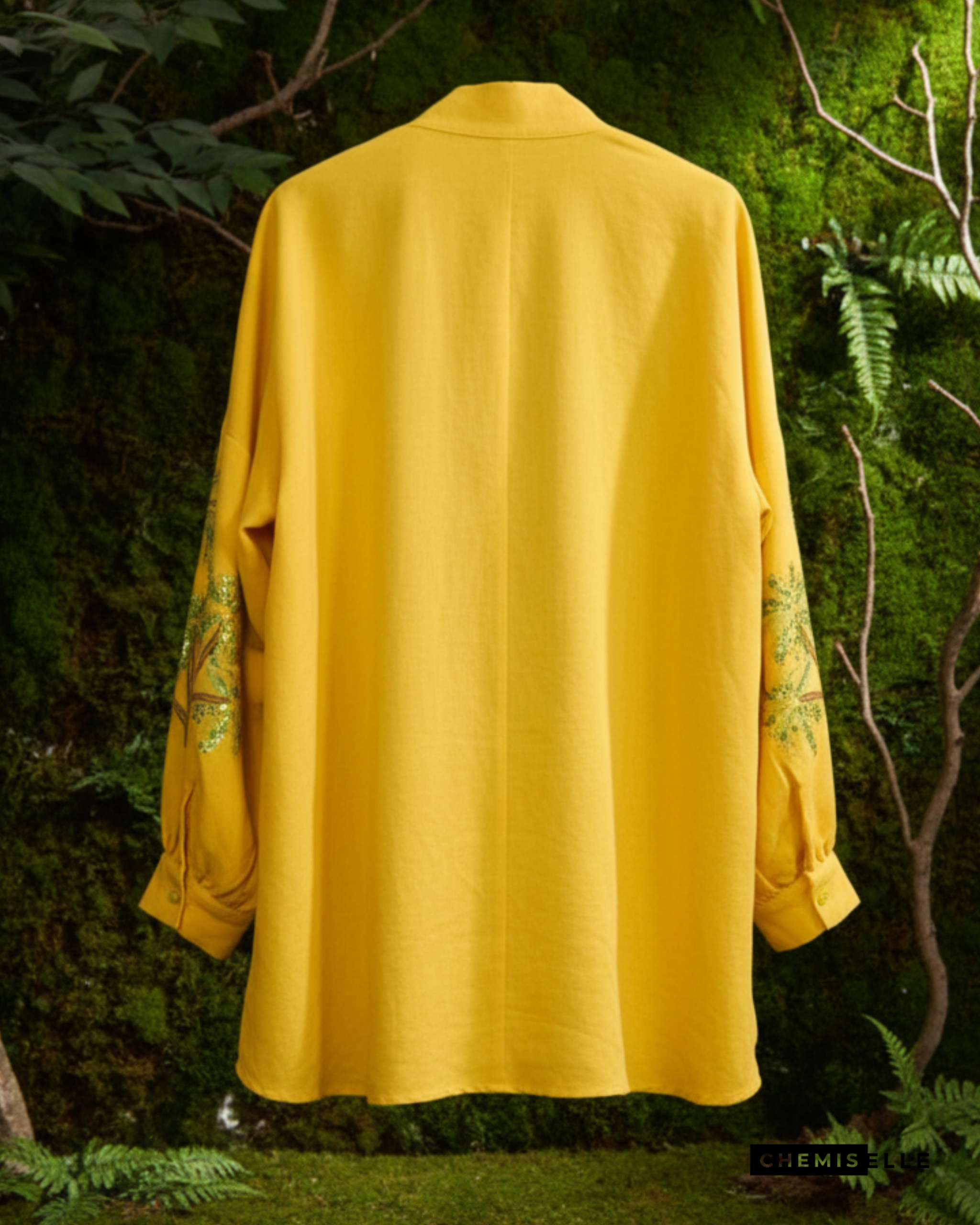 Design : Dos et manches brodés en fines formes de palmier, ornés de sequins pour une touche de brillance. Le devant est simple, apportant une belle harmonie au design.