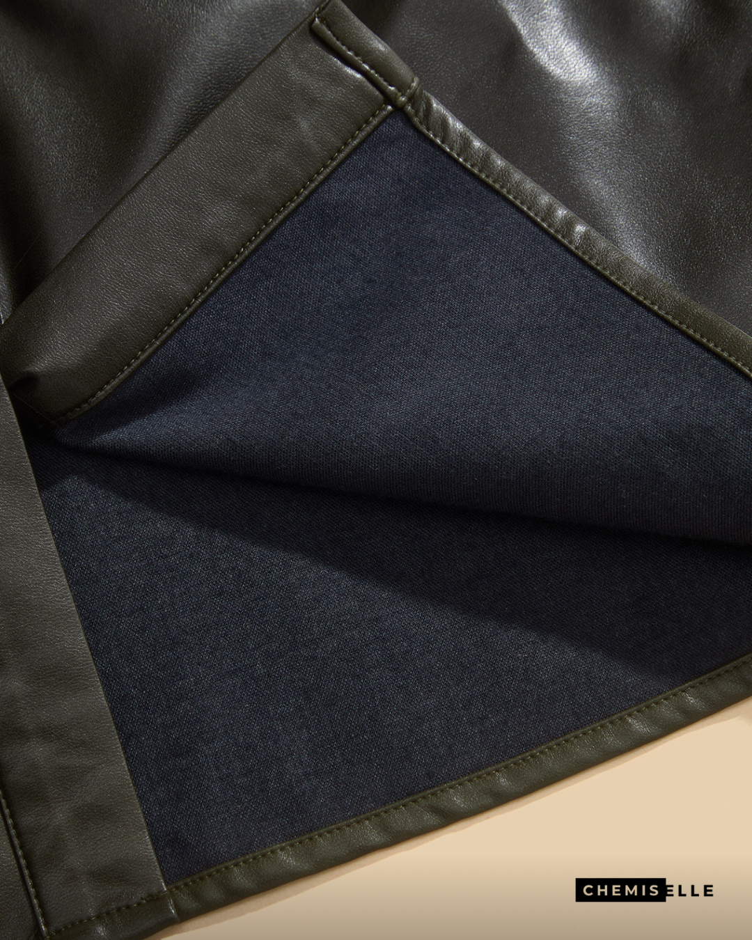 La chemise Kaki Émeraude Strass séduit par son tissu en polyuréthane effet cuir, à la fois moderne et sophistiqué.