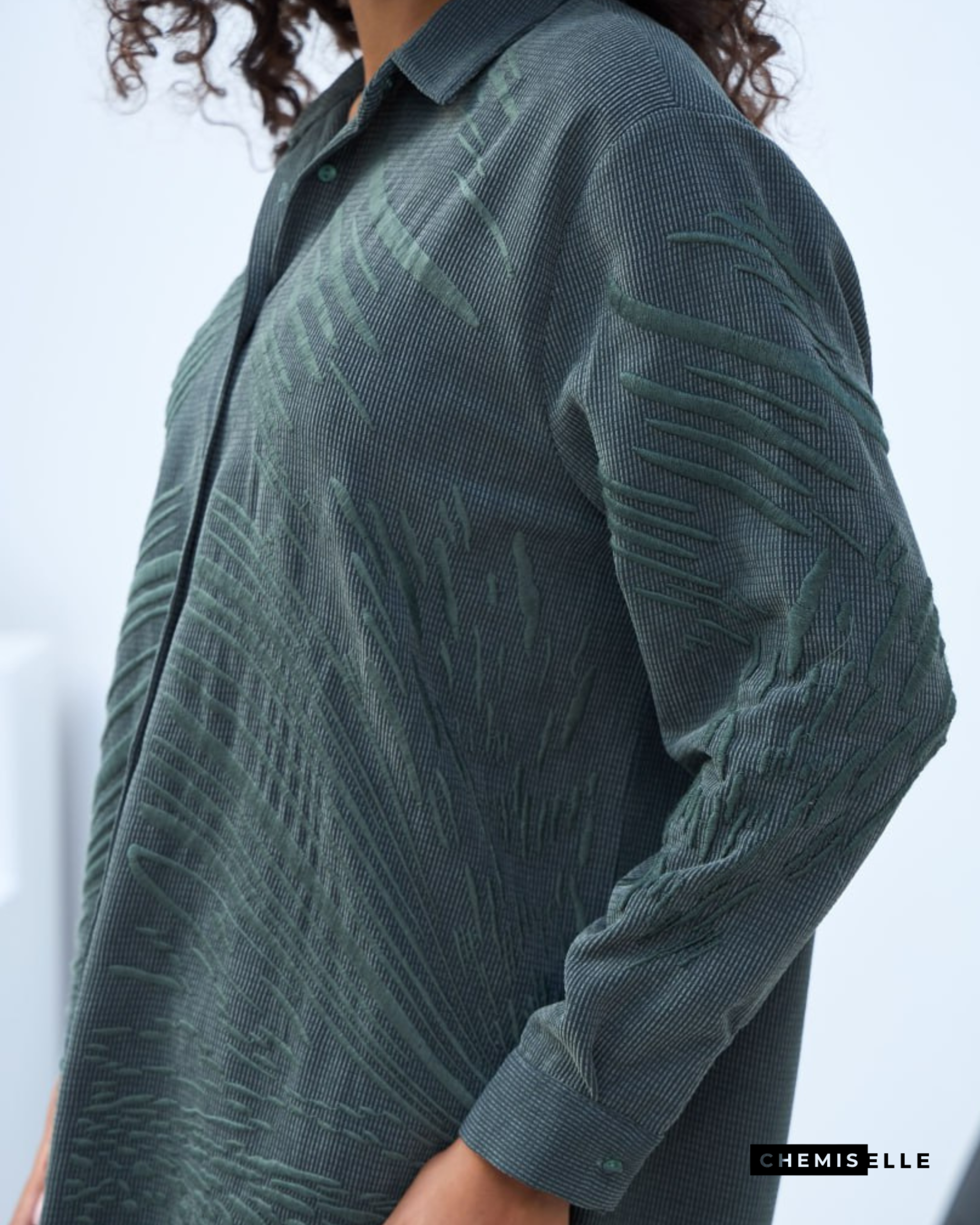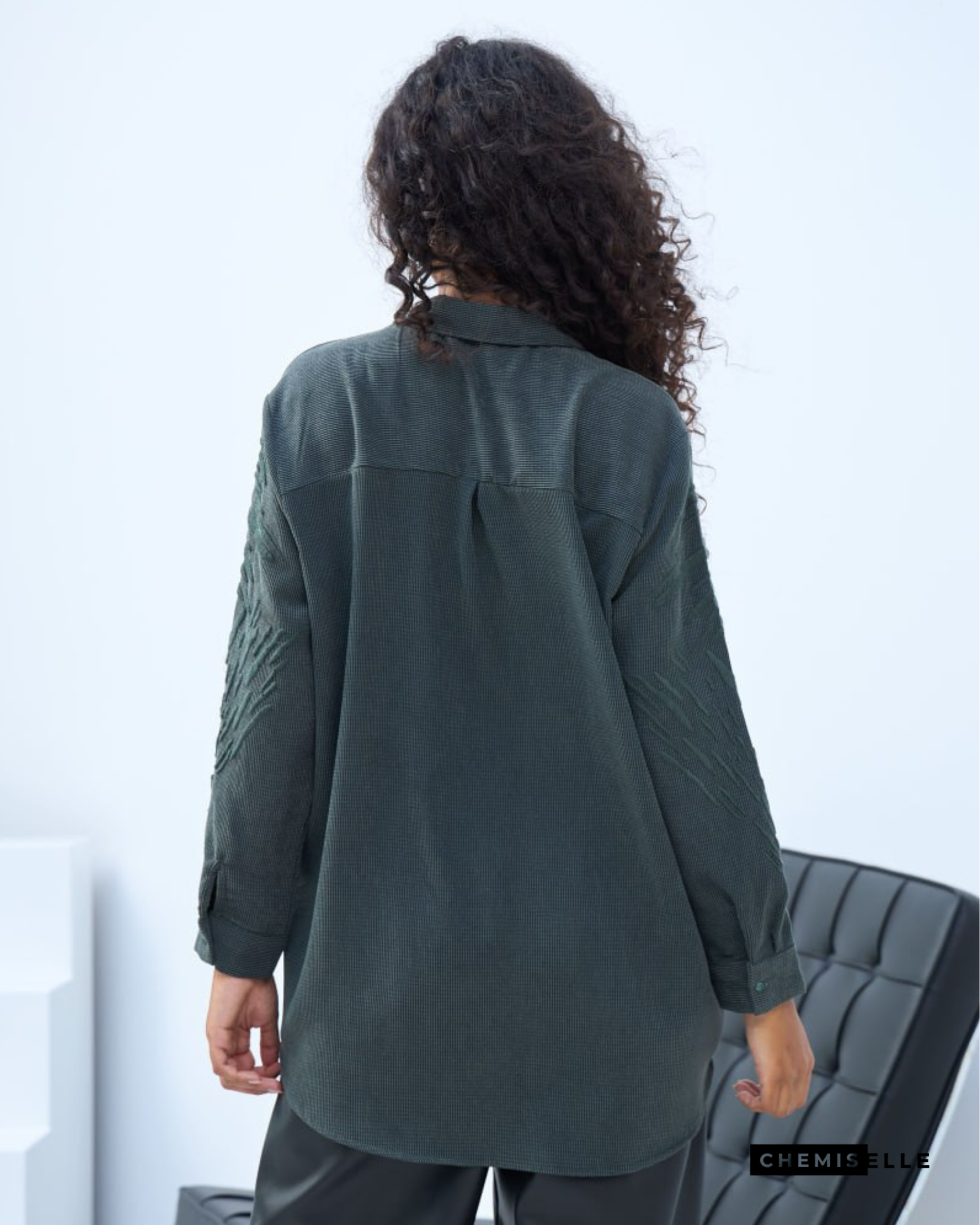 Découvrez la chemise Katifa, une pièce élégante et confortable qui devient un essentiel pour les saisons automne et hiver. Confectionnée en tissu velours côtelé de haute qualité, cette chemise unique vous garde au chaud tout en rehaussant votre style.